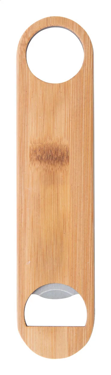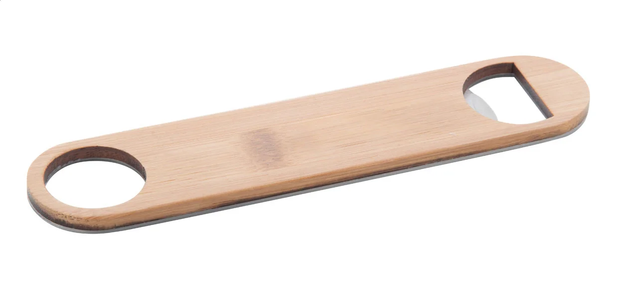 Apribottiglie in acciaio con rivestimento in bambù.