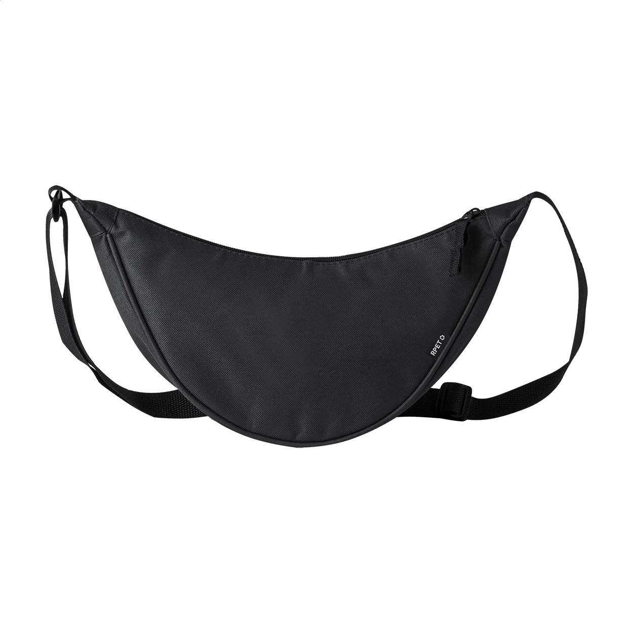 Marsupio a tracolla in poliestere con scomparto principale chiuso da cerniera ed etichetta RPET.