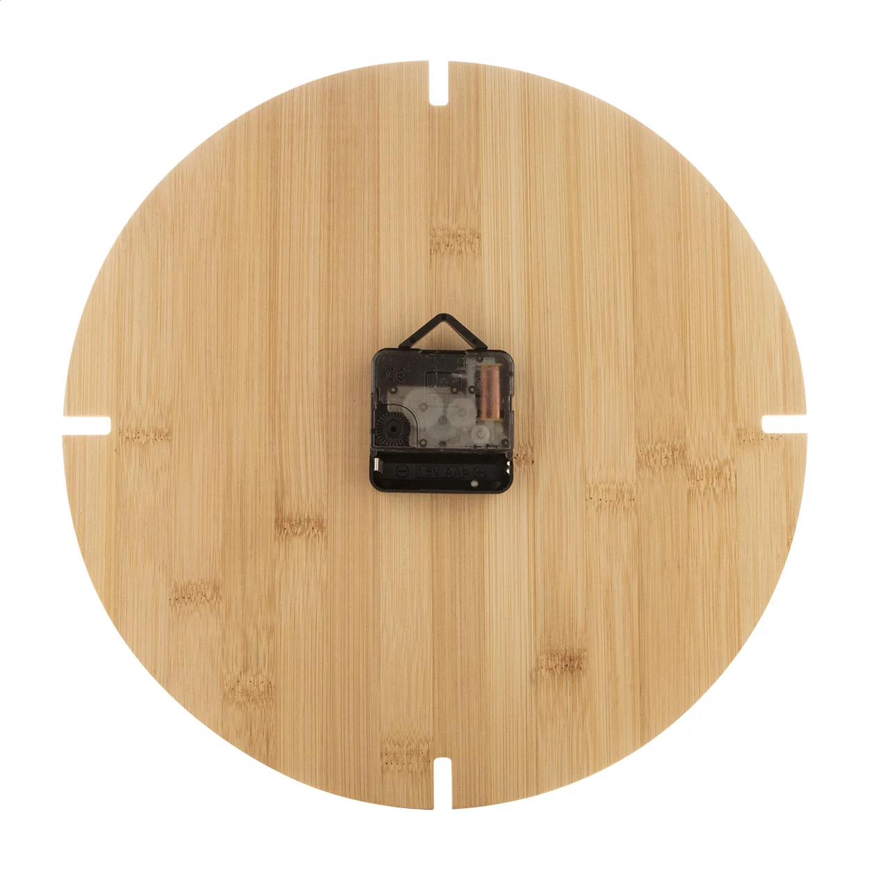 Orologio rotondo da parete in bambù. Funziona con 1 batteria AA, non fornita.