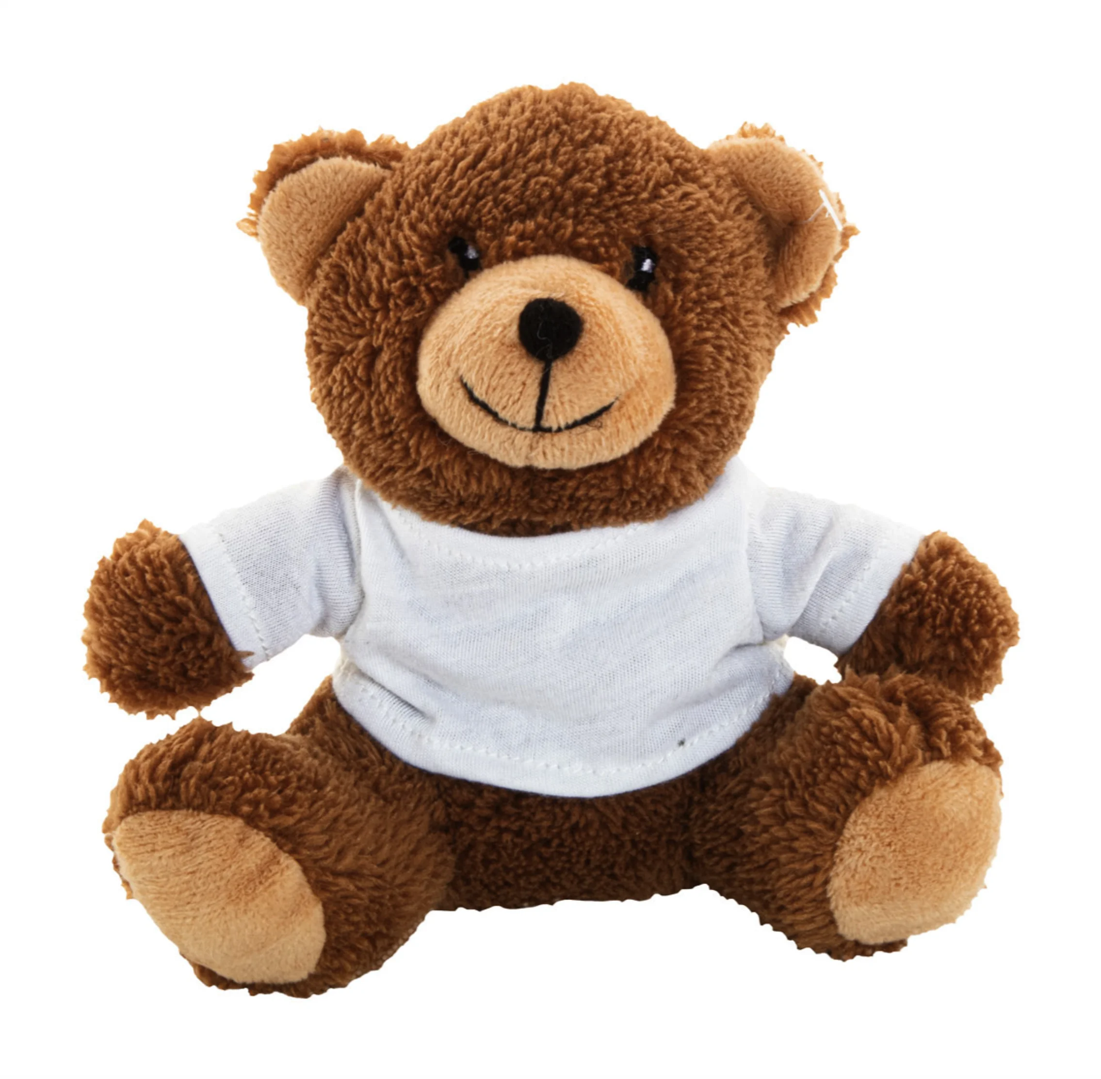 Orsetto di peluche in RPET con maglietta stampabile in poliestere RPET. Gli ordini senza stampa saranno spediti con la maglietta separata.