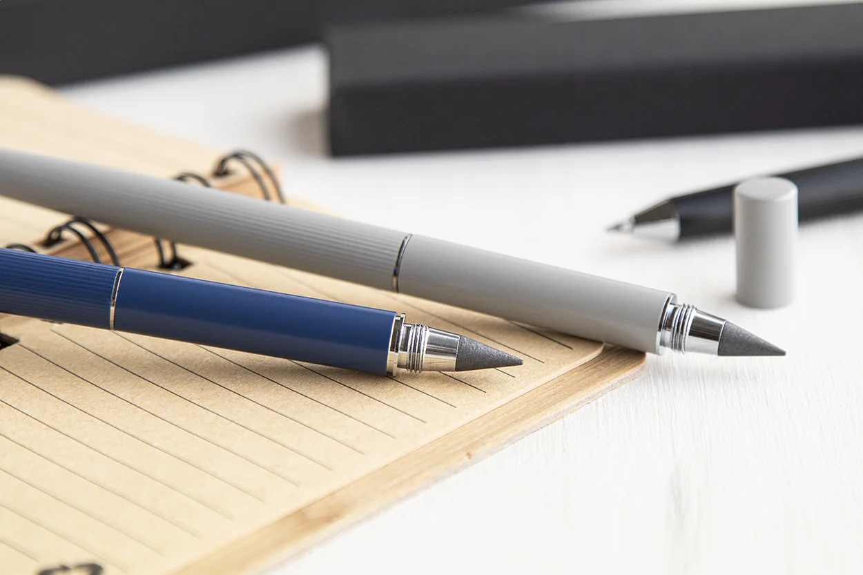Penna a sfera con meccanismo a rotazione e penna senza inchiostro in metallo 2 in 1 in confezione regalo nera