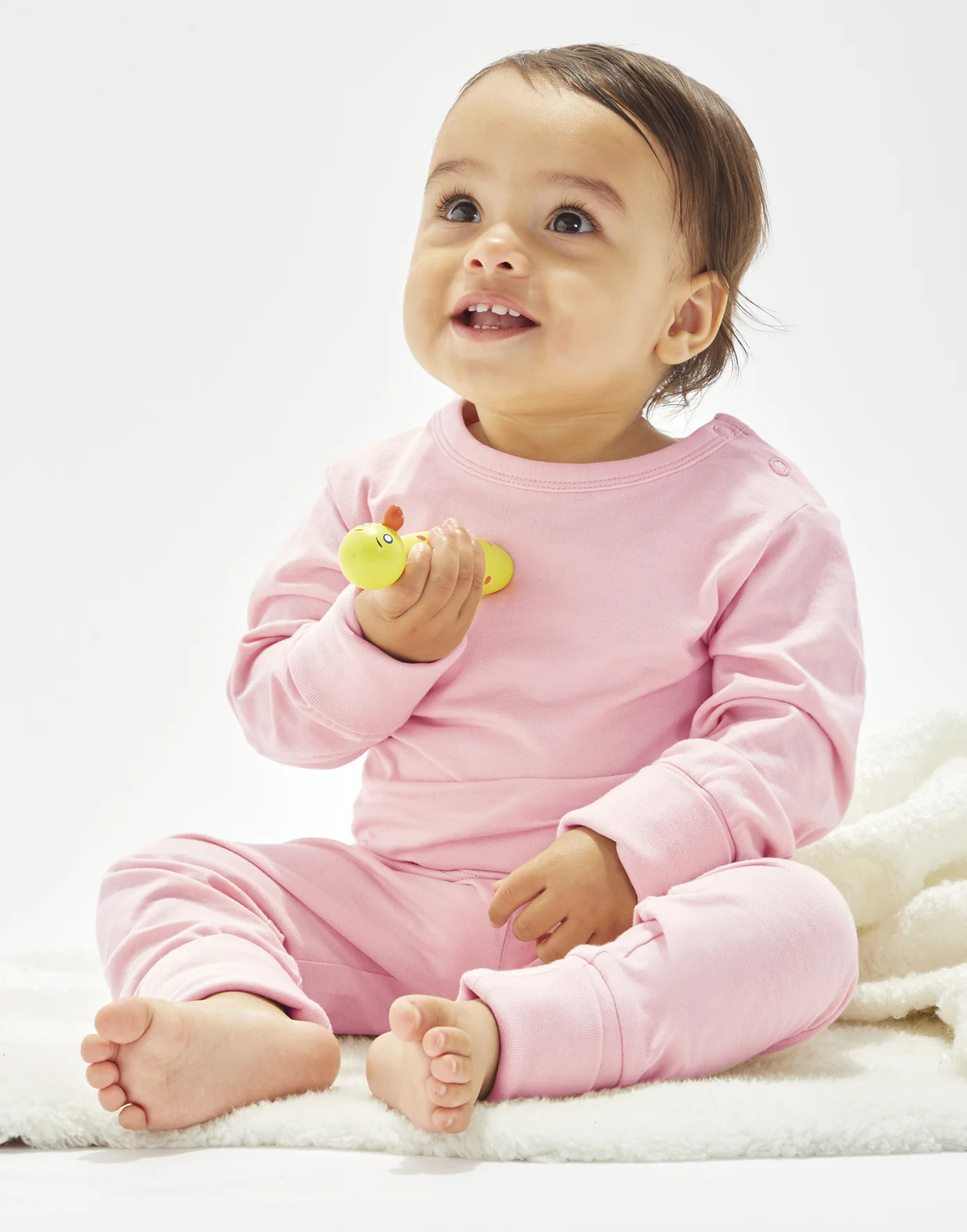 • Polsini extra lunghi a costine su maniche e gambe che possono essere indossati con risvolto/senza risvolto (man mano che il bambino cresce)