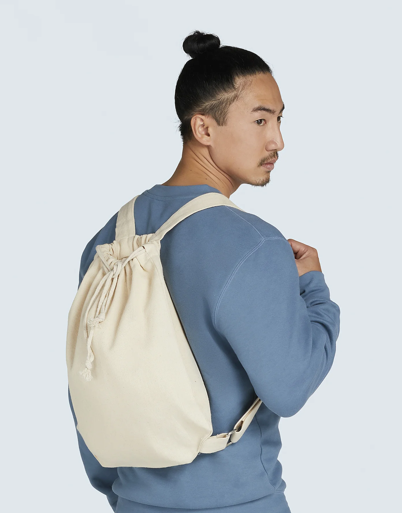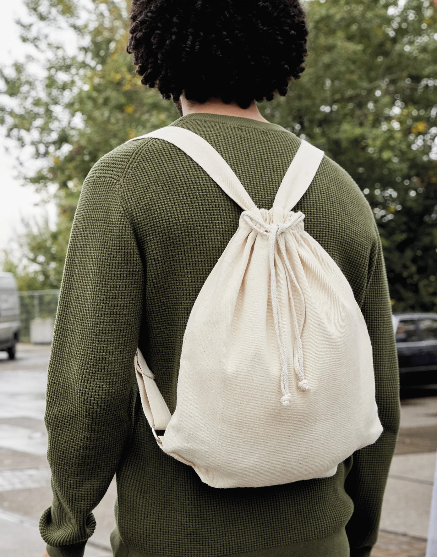 • Chiusura a tirante con doppia coulisse sulla parte superiore della borsa